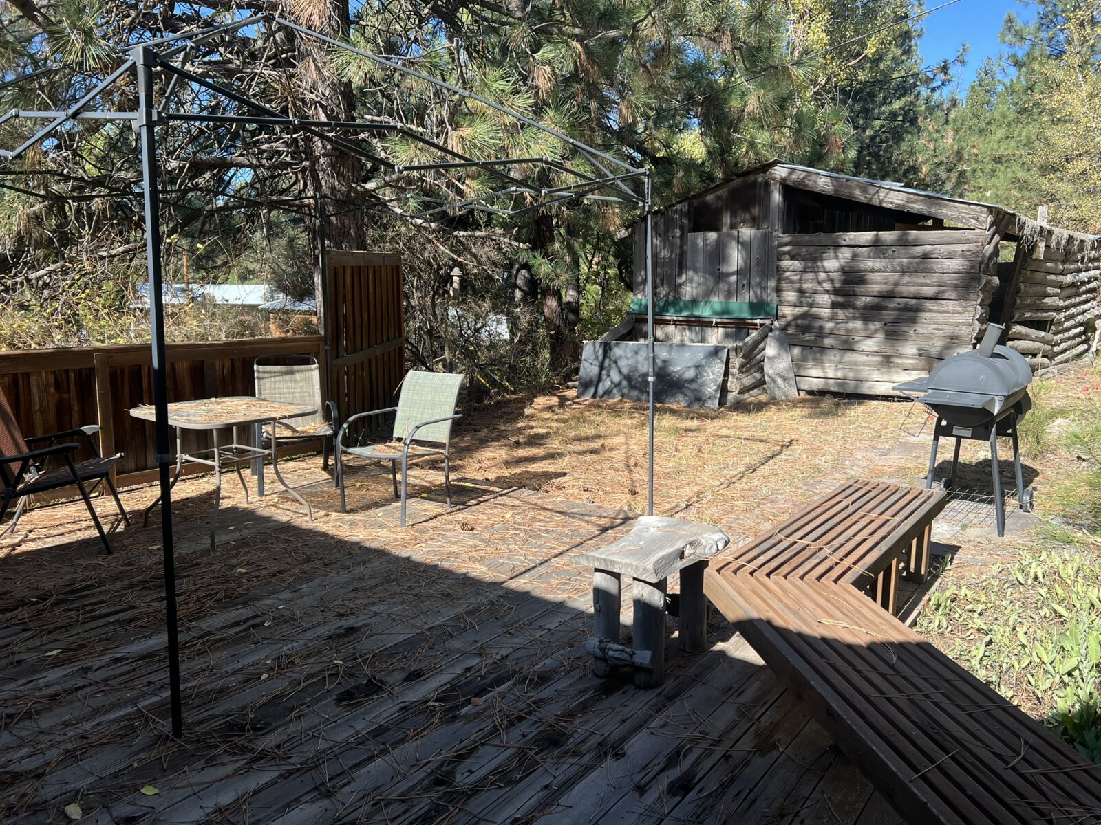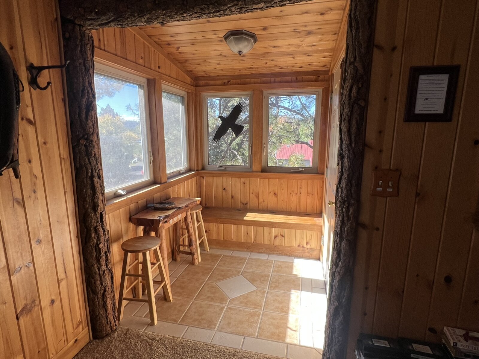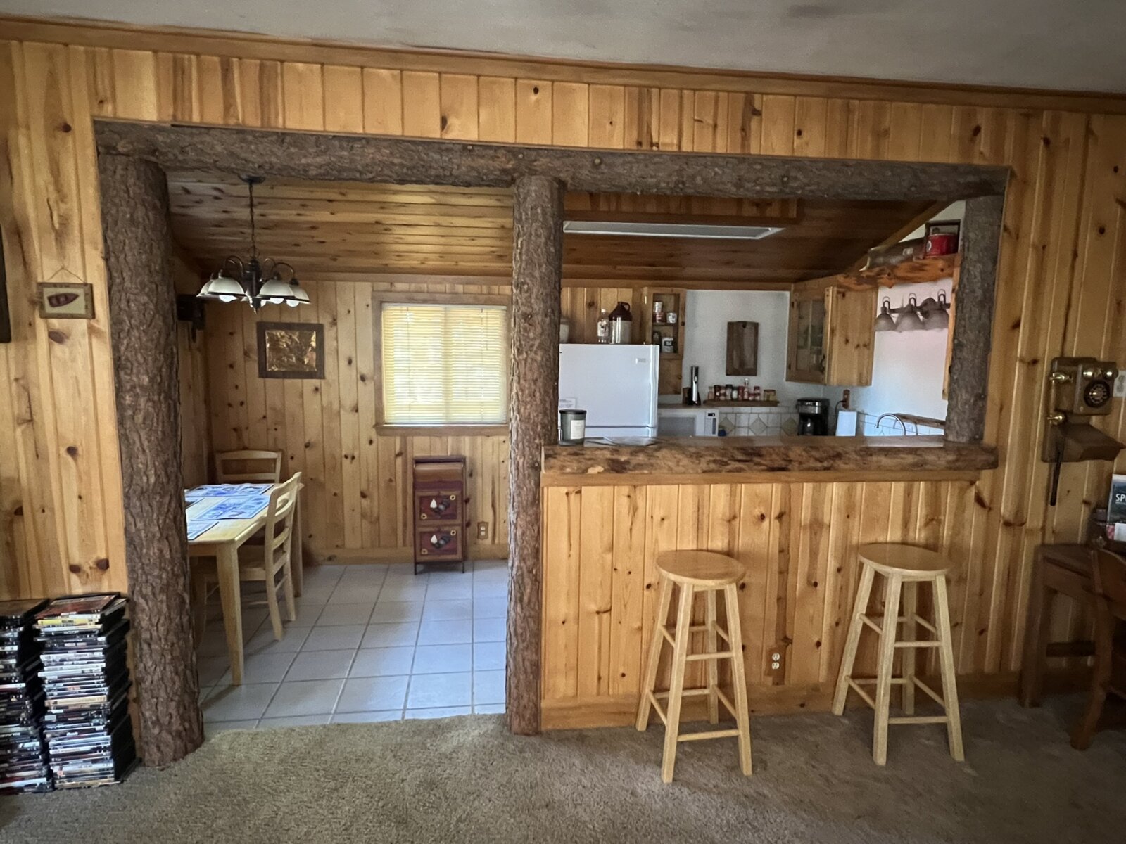 Charming Handcrafted One-Bedroom Cabin with Rustic Elegance. Discover your perfect retreat in this beautifully handcrafted one-bedroom, one-bath cabin, thoughtfully designed with artistic flair and natural materials. Built entirely with care, this cozy home boasts exquisite log accents, rich pine and cedar woodwork, and unique artisanal touches that create a warm and inviting atmosphere. The open-concept living space features tile flooring throughout the kitchen and bath, adding durability and a modern touch to the rustic charm. The fully equipped kitchen offers ample space for cooking and entertaining, complemented by the beauty of natural wood finishes.