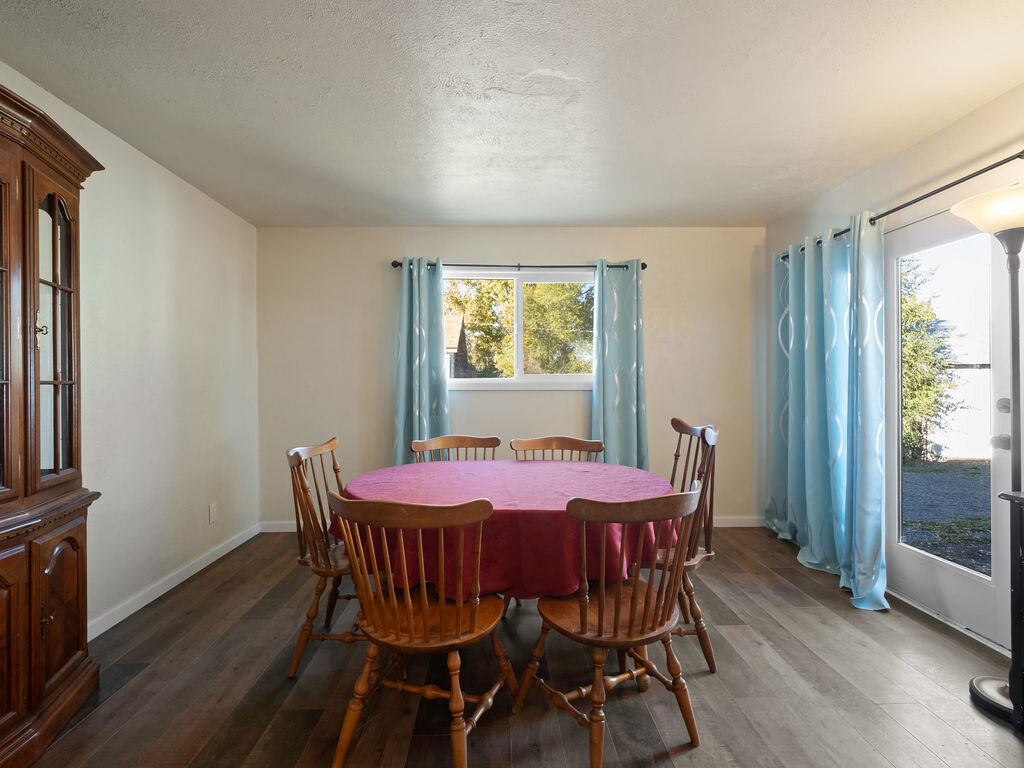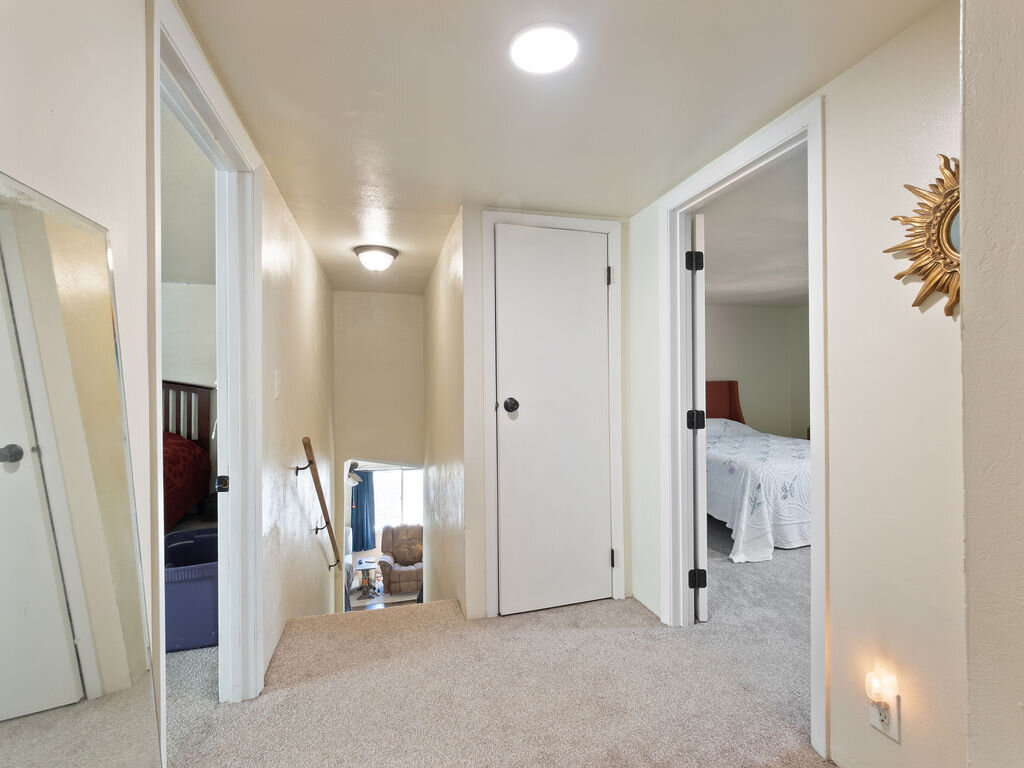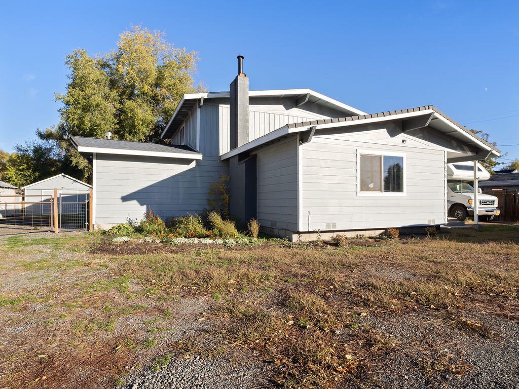 Over 1/2 ACRE! This home was stripped to the studs and totally renovated in 2019! Circular driveway in front with wide side yard leading back to the garage and a concrete pad for RV parking on the other side. Living room has vaulted ceilings and fireplace with a certified wood stove insert. Central heat is gas F/A (2019). Kitchen features updated cabinetry, counters, and includes all stainless appliances. Enjoy an oversized dining room with French door leading out to the back. The primary bedroom has on-suite bath with quartz counters, double sinks, tiled floor and tiled shower surround. Primary bed/bath is on the main level. The two upstairs bedrooms have walk-in closets and new carpeting. The upstairs bath has tub/shower and tiled floor. Covered deck off the back door. Garage has power and a portion of the back is partitioned off for a poultry coop (could easily remove partition). Back yard is fenced.