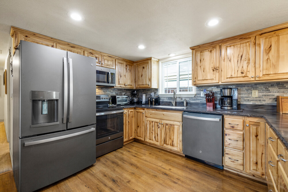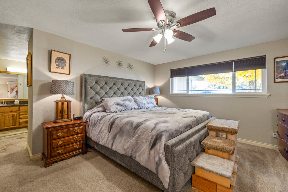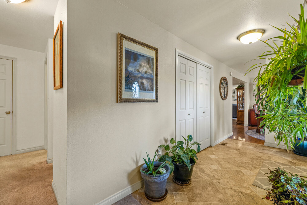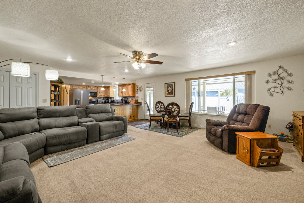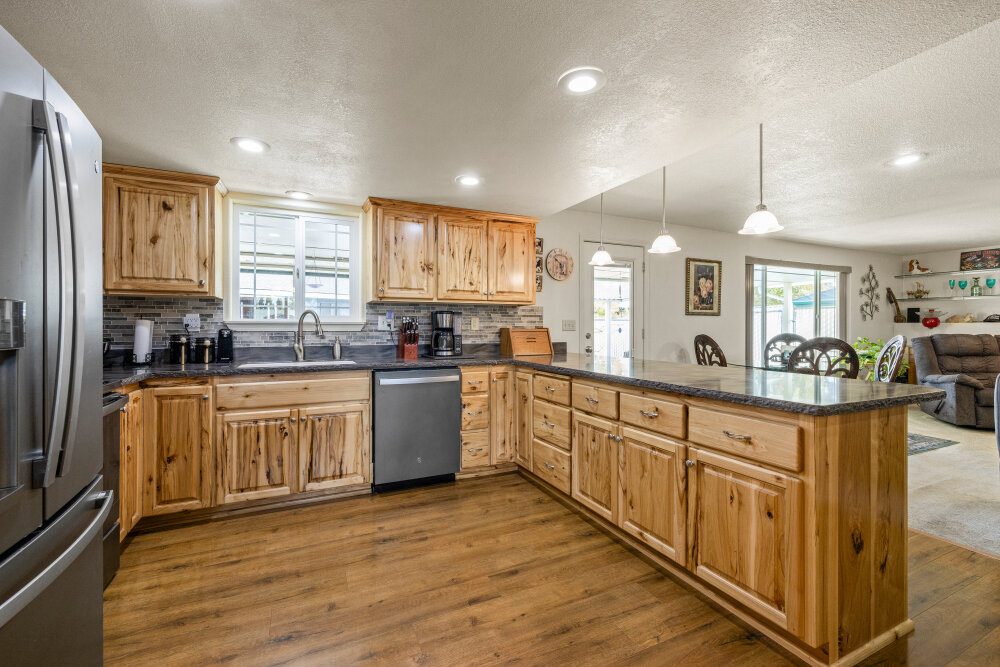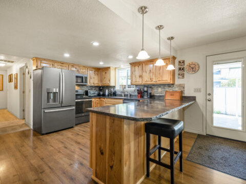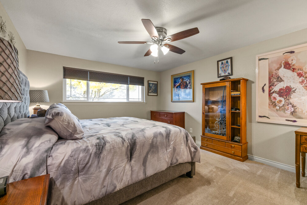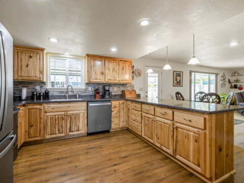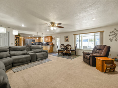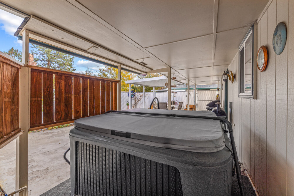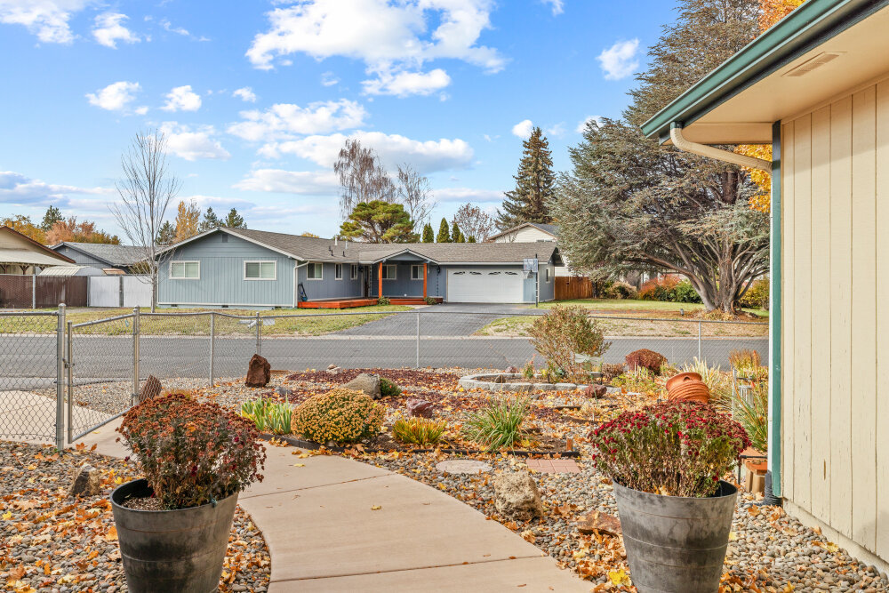 This Gatewood beauty is on a corner lot and has an oversized garage with work area. Great parking and even RV parking on the side of the home. Plenty of storage with an 8” X 10′ garden shed. Back yard has a newer Hot Tub which is covered and very private. The entire front and back is landscaped with a covered back patio. The front double door entry is also covered and complete fencing front and back. Many upgrades have been done, and this home will include a one year First American Home Warranty for the new owner. Custom Borror cabinets with high quality counter tops in the kitchen. Open floor plan with 3 large bedrooms and 2.5 bathrooms in over 2,200 square feet of space on one level. Property is over ¼ acre and located close to schools. Call for an appointment today!